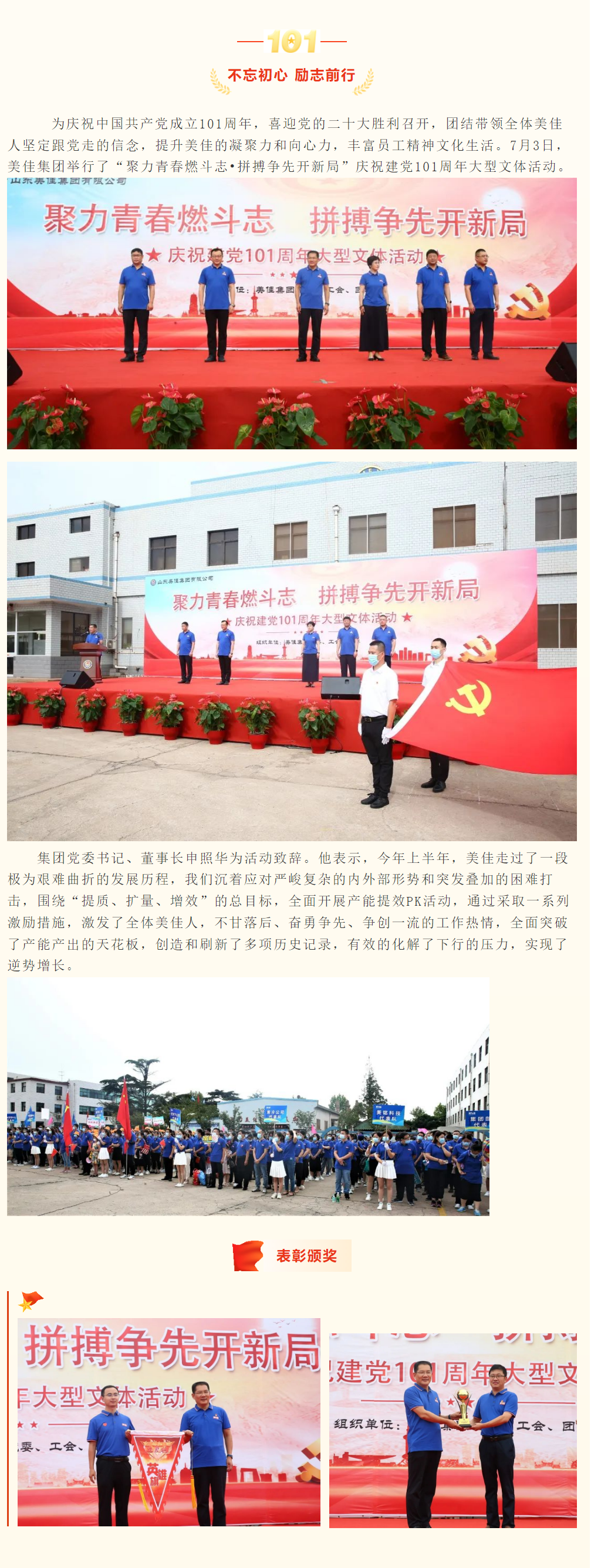 美佳集团举办聚力青春燃斗志•拼搏争先开新局” 庆祝建党101周年大型文体活动